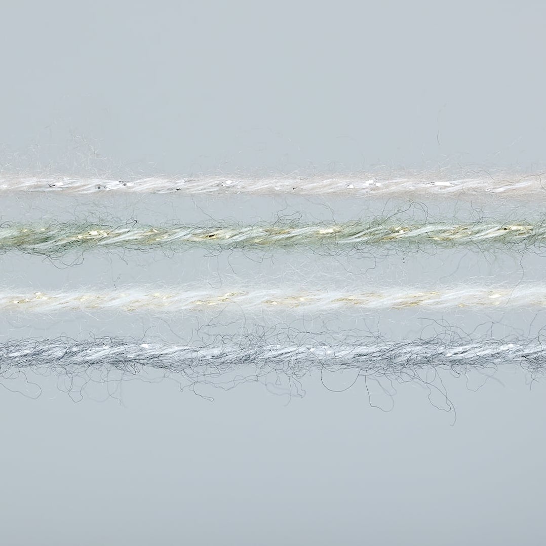 Shiny Day состоит из 38% мериносовой шерсти (19 микрон), 44% бамбука и 18% метанита, образуя нить с метражом 150 м в 50 г. Плотность 22 петли на 30 рядов и спицы 4–4,5 мм создают равномерное, пушистое полотно с пластичной драпировкой. Подкрученная бамбуковая основа в форме цепочки наполнена мериносом, а тонкая нить люрекса добавляет нежные переливы, подчеркивая текстуру и глубину оттенков.