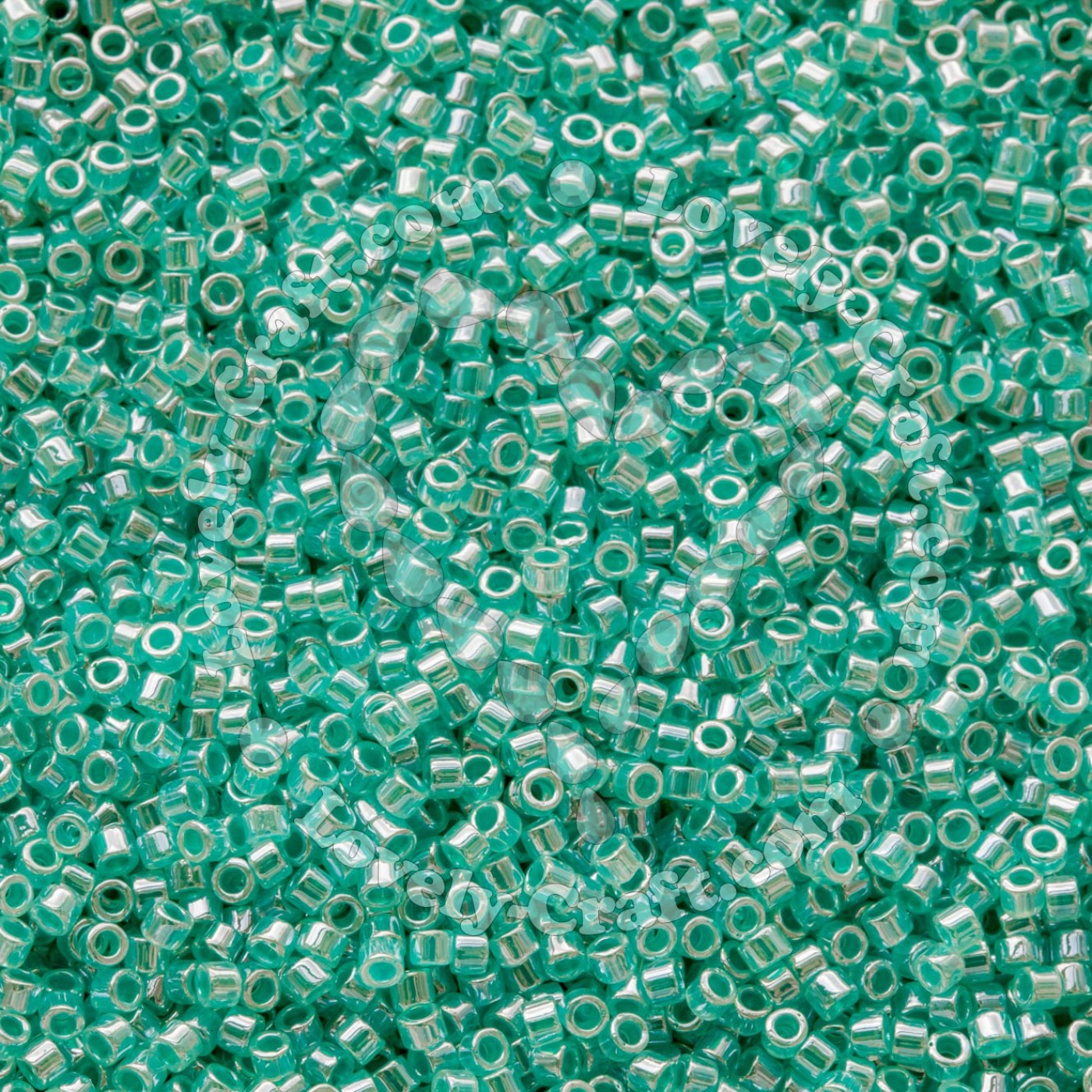 Один из самых популярных видов японского бисера MIYUKI - бисер Delica цилиндрической формы зелёного цвета Lined Crystal Green Aqua Luster (DB238), размер 11/0.