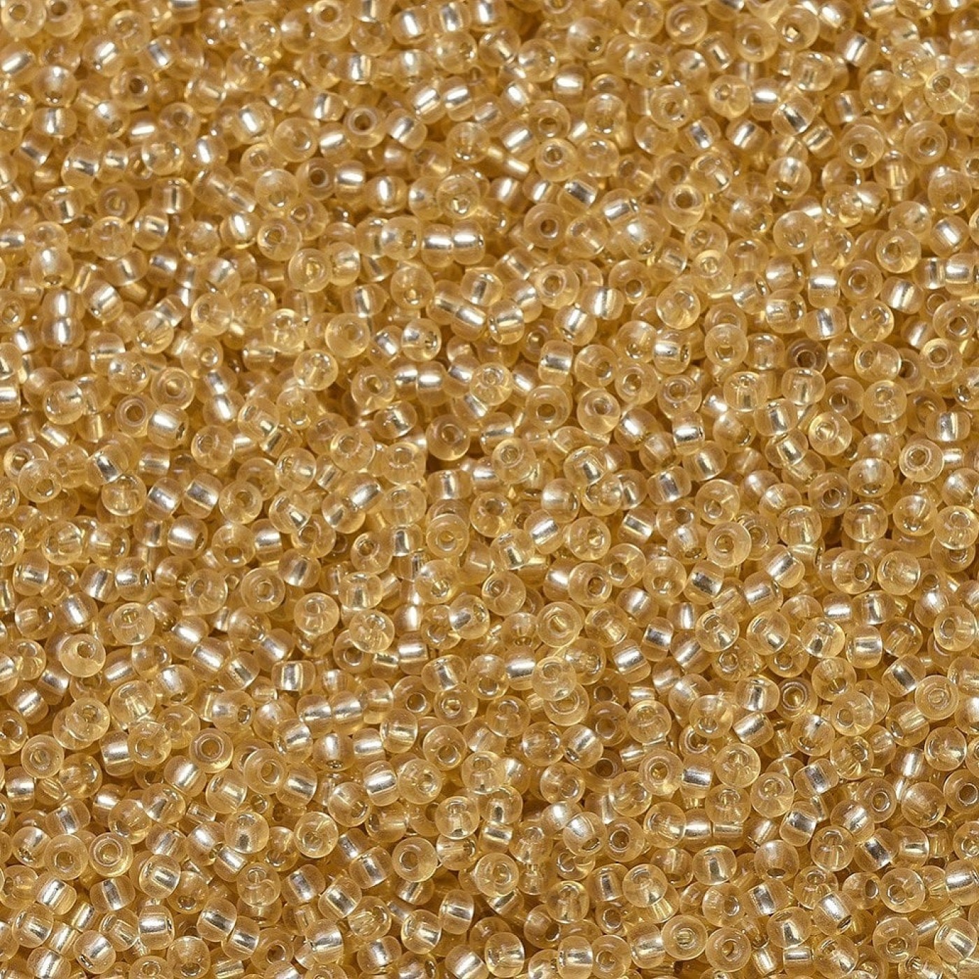Seed bead, Miyuki, glass, transparent silver-lined gold, (RR3), #11 rocaille.Бисер рокайль размера 11/0 идеально подходит для создания украшений со сложными узорами из бисера, переплетениями, вышивкой и многим другим. Бисер Миюки любим дизайнерами-художниками за свой постоянный размер и форму.