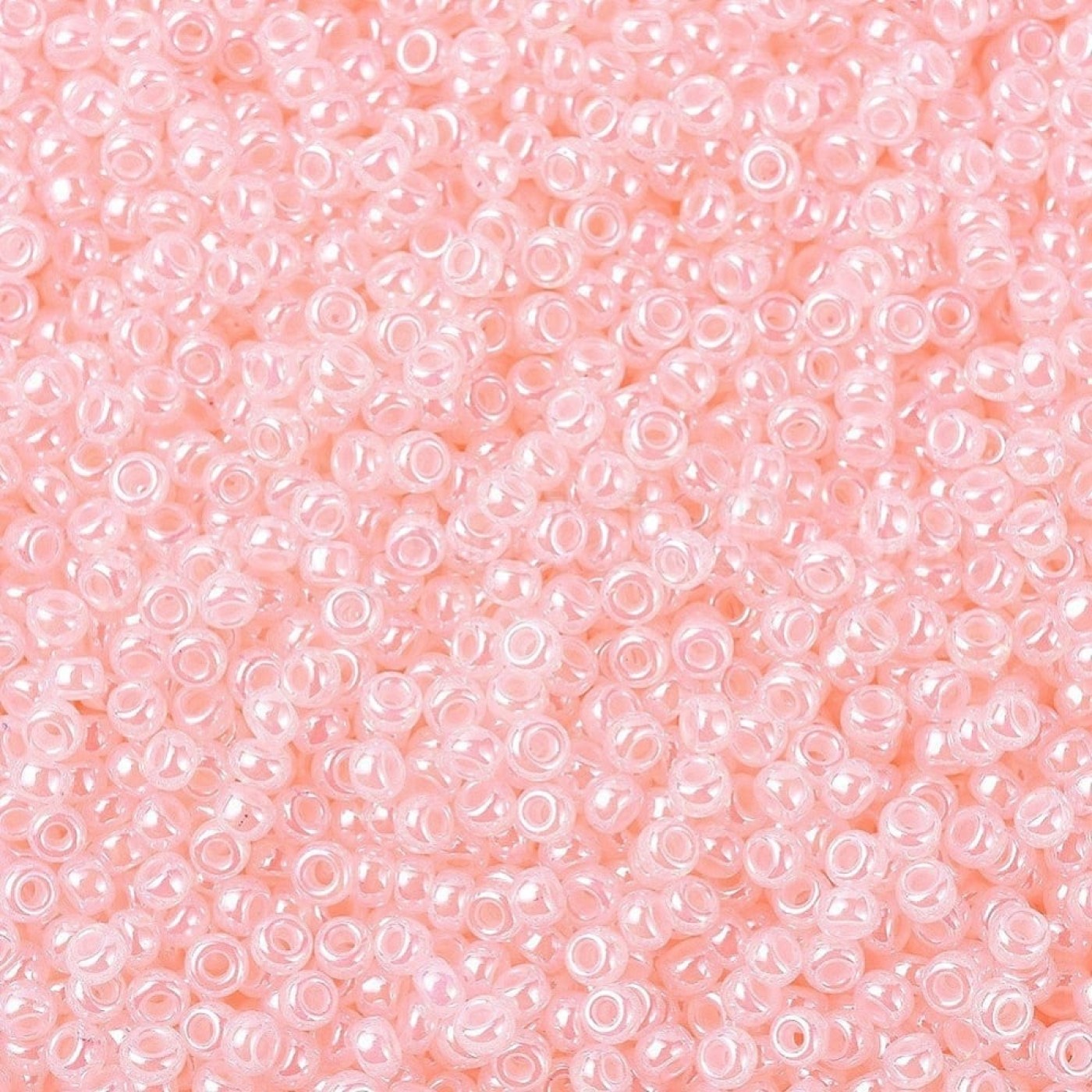 Miyuki 11/0 Baby Pink Ceylon (11-9517) — это японский стеклянный бисер формата 11/0, выполненный в оттенке Baby Pink Ceylon, который отличается мягким розовым тоном с жемчужным, слегка перламутровым фоном.