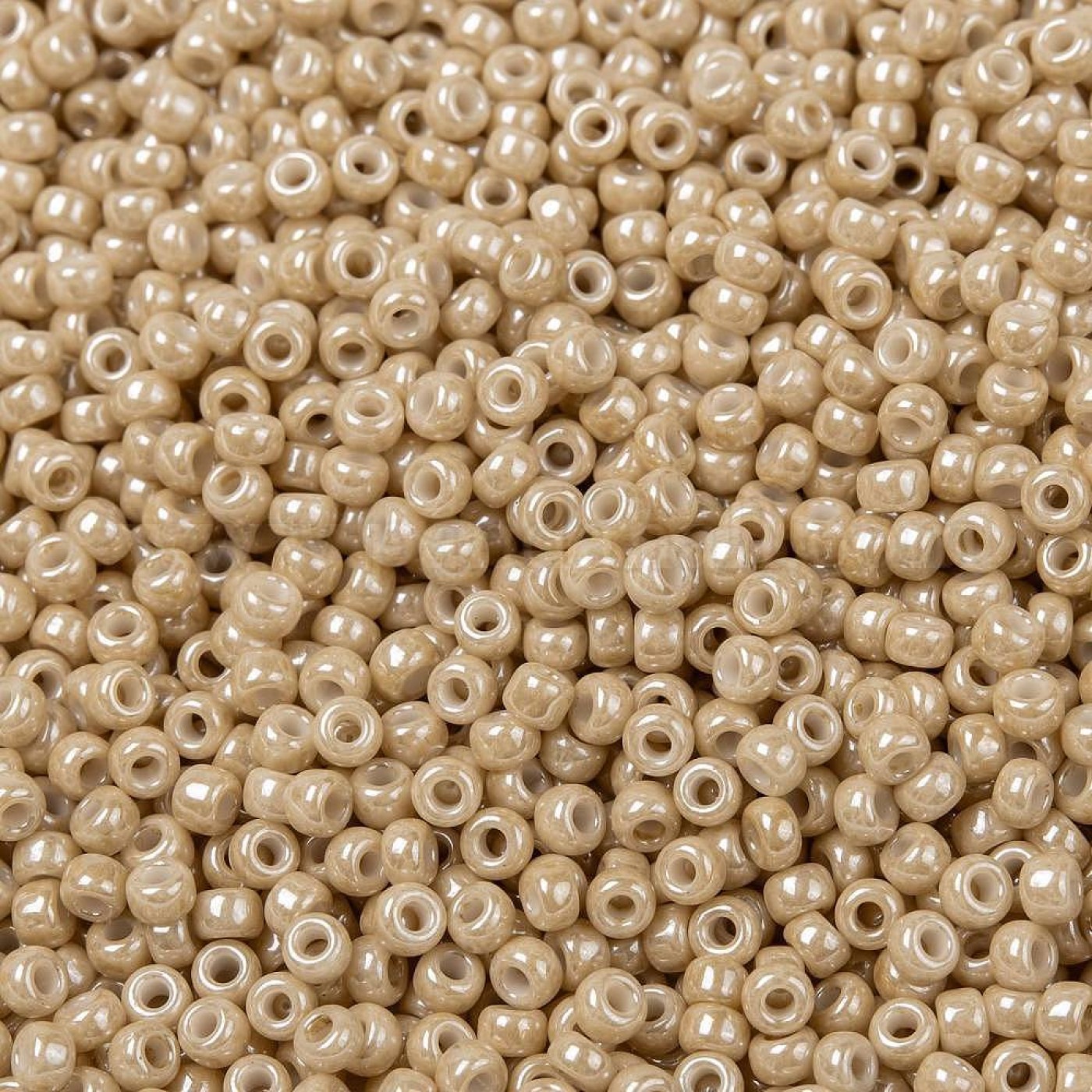 Круглый бисер MIYUKI бежевого цвета (#593) имеет покрытие "Opaque Luster" - это непрозрачный бисер с глянцевым покрытием в виде перламутрового блеска.