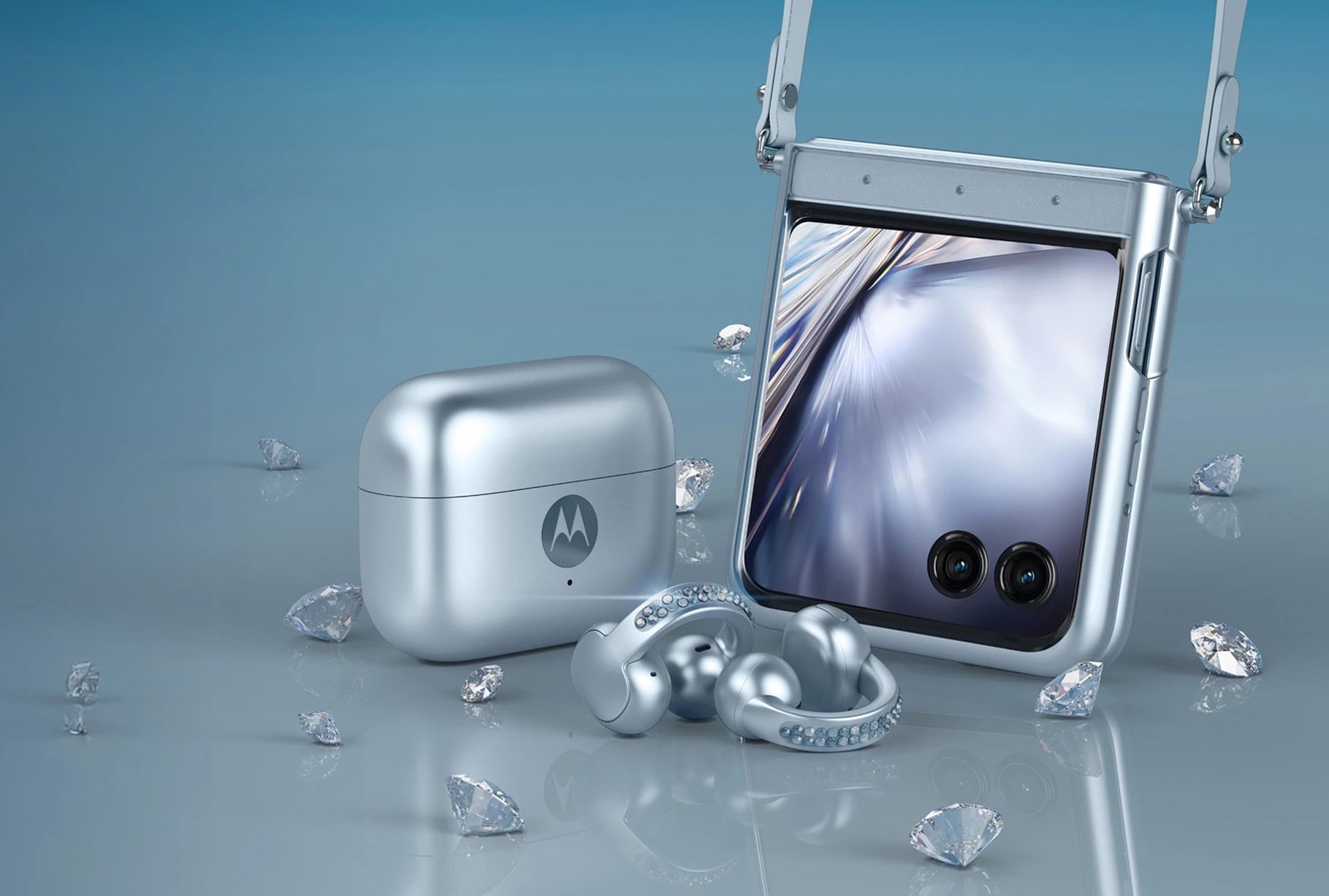 В партнерстве с Motorola Swarovski представили коллекцию Brilliant Collection. Складной мобильный телефон Motorola Razr и наушники Moto buds loop засияли кристаллами Swarovski, гармонично сочетают в себе модный дизайн и функциональность.