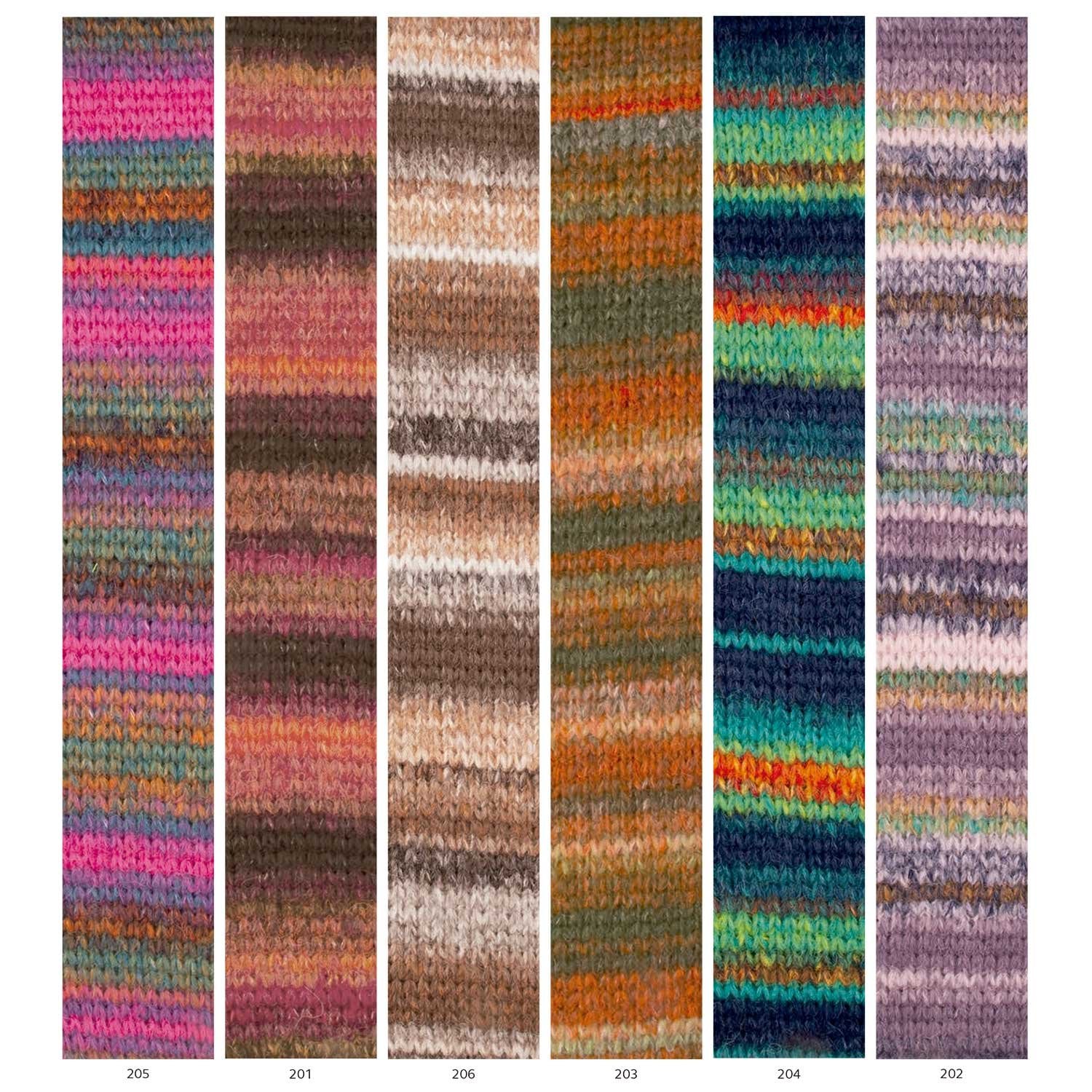 205 - Fuchsia-Duck blue-Rust | 201 - Black-Red-Ochre | 206 - Mink-Rust-Black | 203 - Green-Orange-Rose | 204 - Dark blue-Green-Orange | 202 - Mauve-Rose-Blue-Ochre