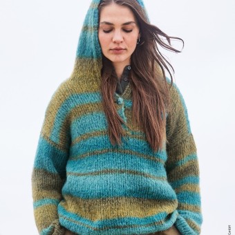 LANA GROSSA Gigante предлагает тонкий цветовой градиент с полосками, который делает каждый проект уникальным. Плавные изменения цвета придают вашим изделиям интересную визуальную глубину без необходимости дополнительных узоров.