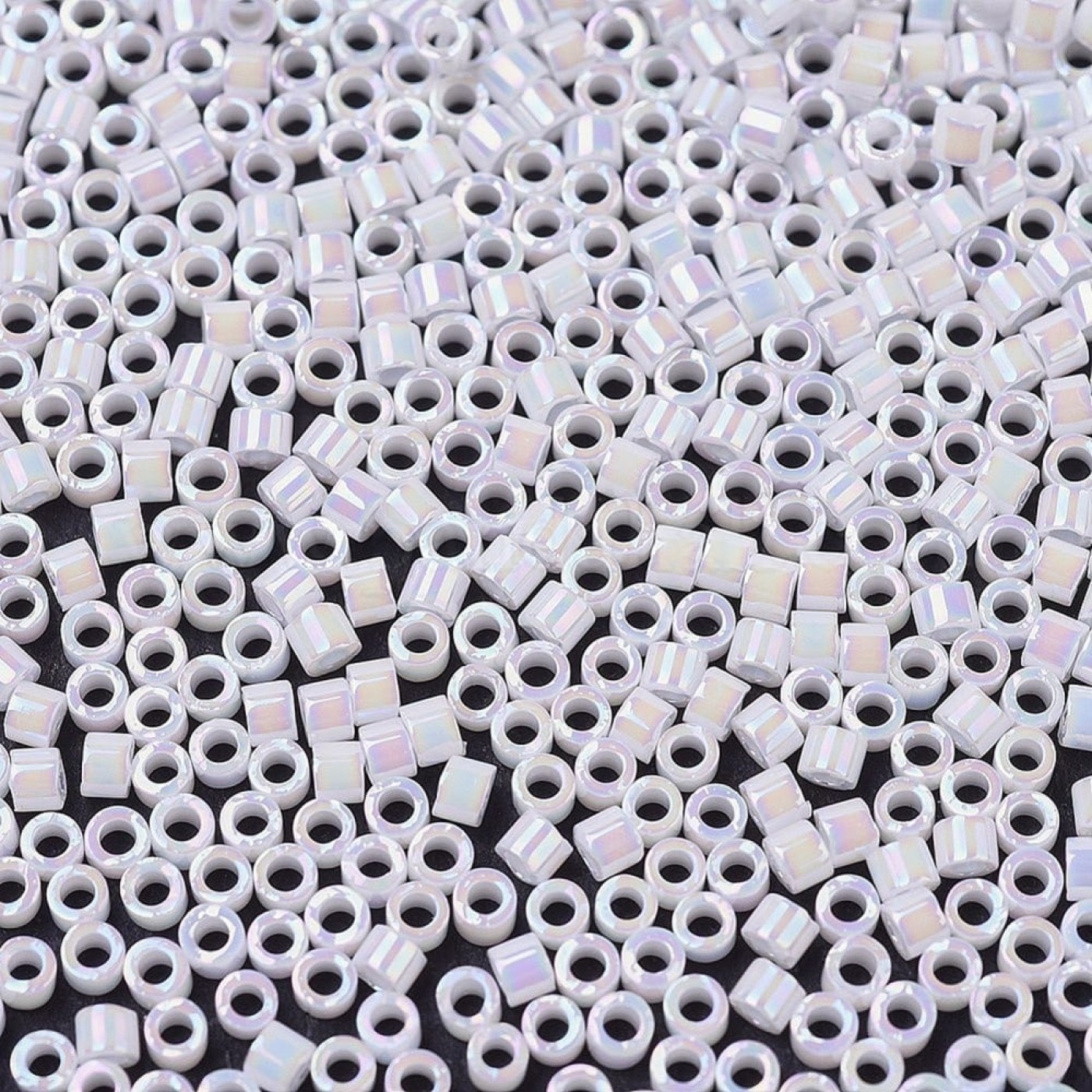 Miyuki Delica DB202 White Pearl AB — это японский цилиндрический бисер формата 11/0 с непрозрачной (opaque) белой основой и блестящим Aurora Borealis (AB) покрытием, придающим бисеру радужный перелив.