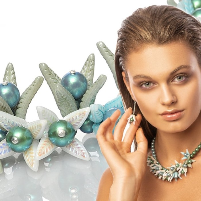 Вам нравятся красивые, свежие, холодные тона? Представляем мастер-класс с использованием нового искусственного жемчуга PRECIOSA с серебристыми отблесками и лёгким радужным отливом. Вы можете выбрать из широкого ассортимента оттенков размером 4 мм, 6 мм и 8 мм.