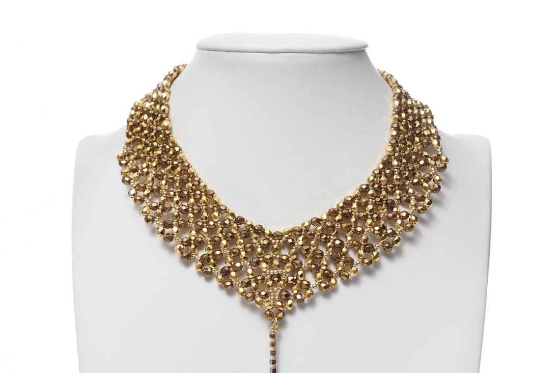 Хотите быть в центре внимания на балу? С этим колье вы точно будете! Здесь мы предлагаем вам мастер-класс по изготовлению эксклюзивного украшения из бусин и бисера из коллекции PRECIOSA Luxury Coating. Используйте бусины и бисер с покрытием из настоящего золота, и ваши вечерние украшения станут незаменимым сверкающим аксессуаром для любого светского мероприятия.