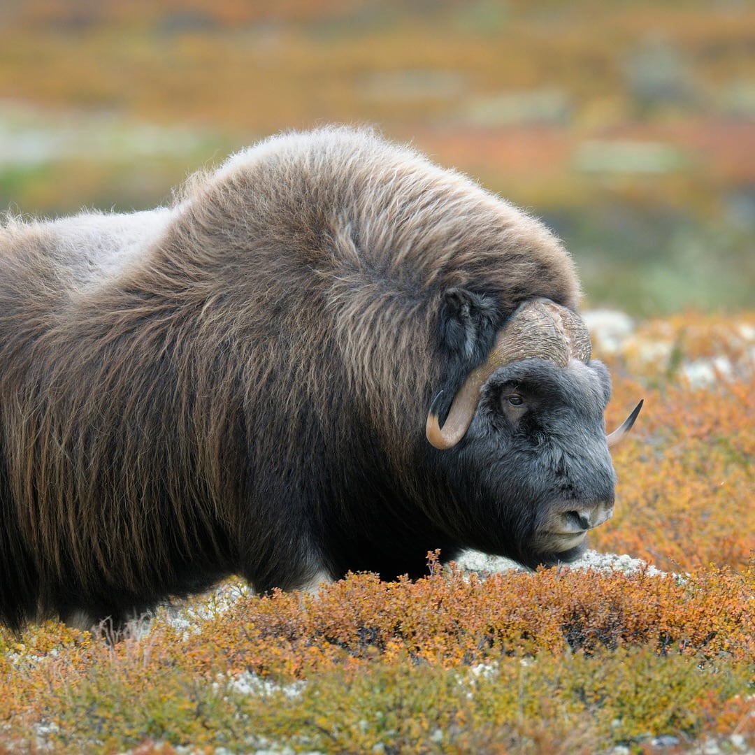 Овцебык, крупное травоядное млекопитающее, обитающее в арктических районах Северной Америки, Гренландии и на северо-востоке России, хорошо приспособлено к выживанию в холодном арктическом и субарктическом климате. Овцебыки отличаются характерной внешностью: у них густая, косматая шерсть, доходящая почти до земли. Рога у самцов и самок изогнутые, но у самцов рога крупнее и могут образовывать на лбу бугорок. Шерсть состоит из мягкого подшерстка, называемого кивиут, который обеспечивает теплоизоляцию, и более длинных остевых волос.
