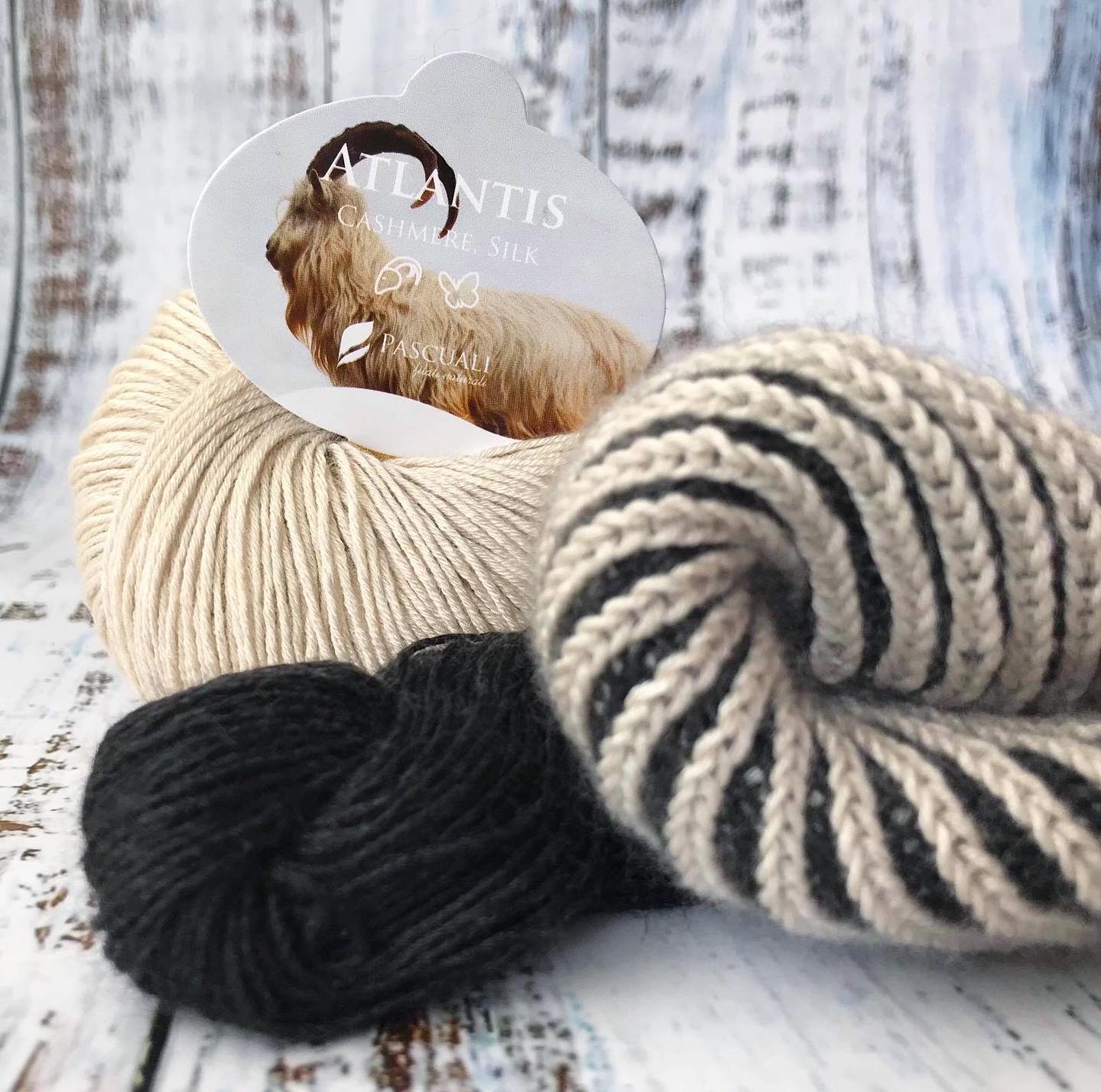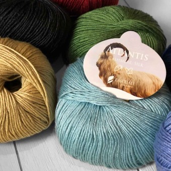 Atlantis — одна из лучших пряж в ассортименте Pascuali. Она состоит на 70% из кашемира и на 30% из шёлка тутового шелкопряда. Кашемир делает пряжу мягкой и тёплой, а шёлк тутового шелкопряда придаёт ей нежный блеск. Эта смесь даёт тонкую, но прочную пряжу, блестящую, шелковистую и исключительно мягкую.