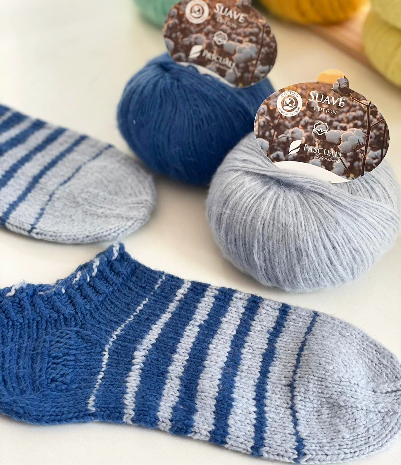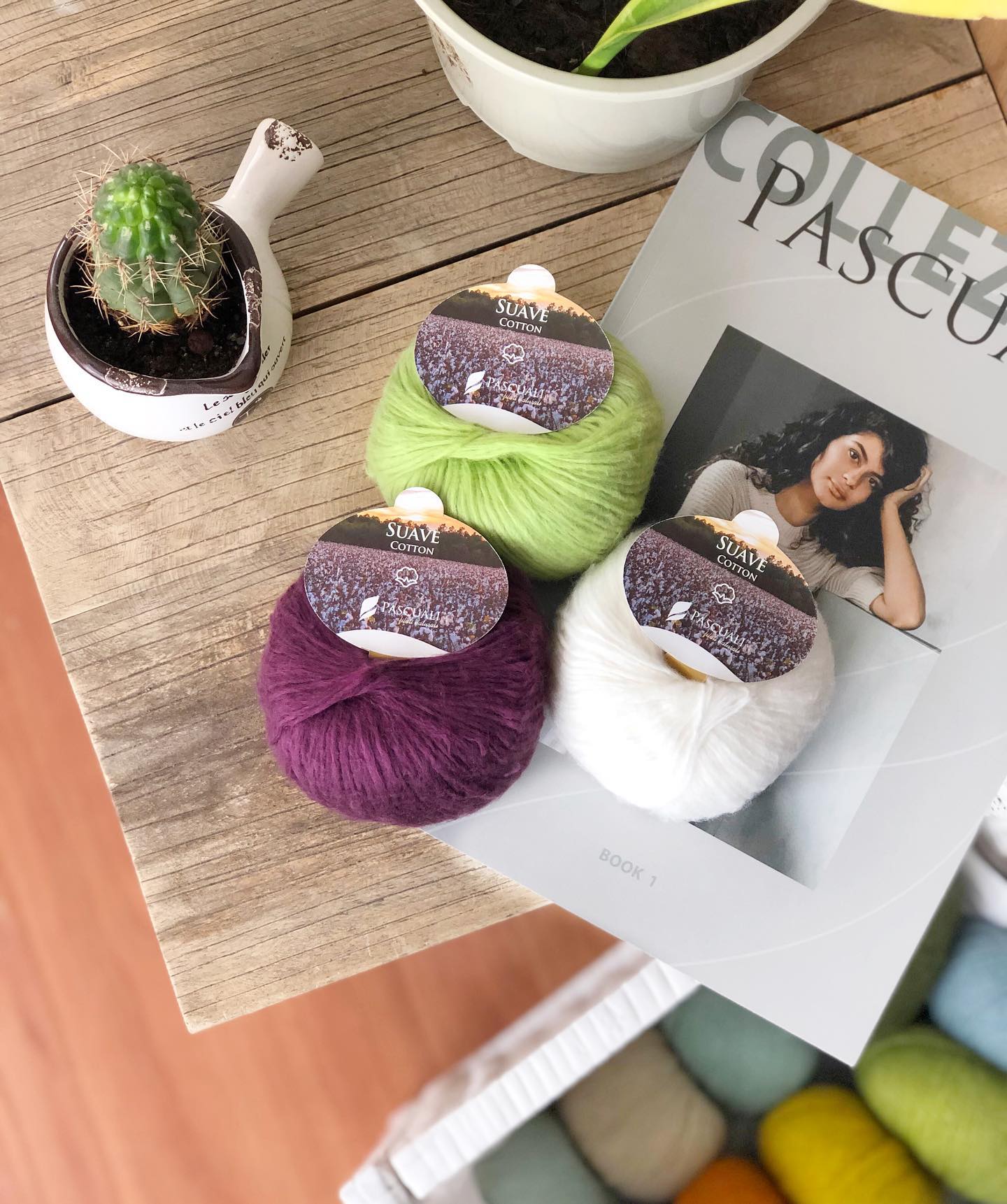При внимательном рассмотрении смотанного клубка пряжи Suave можно заметить нечто похожее на катышки. Это связано именно со способом её изготовления: её структура поистине особенная — в отличие от обычных методов прядения, она состоит из тончайшей хлопковой сетки, невидимой невооружённым глазом, которая деликатно скрепляет тонкие хлопковые волокна. Эта уникальная особенность добавляет очарования пряже Suave и не должна вас отпугивать, поскольку настоящая магия раскрывается на последующих этапах использования и после нескольких стирок.